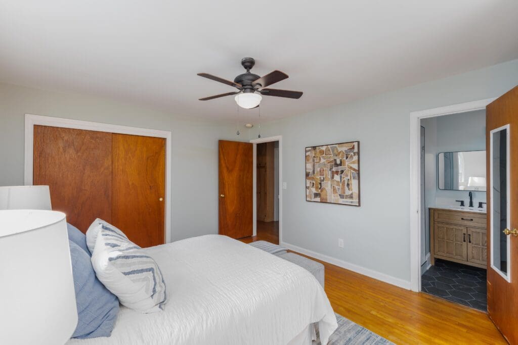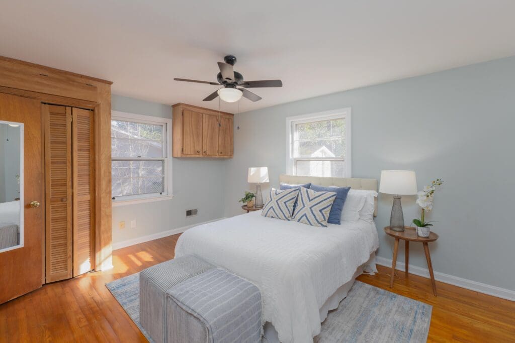 - Spacious Primary Bedroom With Built-Ins and Hardwood Flooring