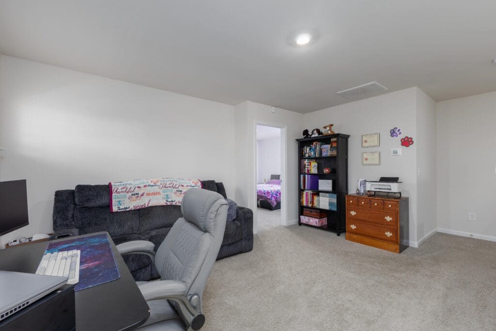 Upstairs, a versatile loft provides ideal space for a home office, home gym, or playroom. The primary suite includes a large walk-in closet, dual vanity sinks, and a separate shower. Two additional well-sized bedrooms share a full bath, while a convenient half bath is located on the main level.